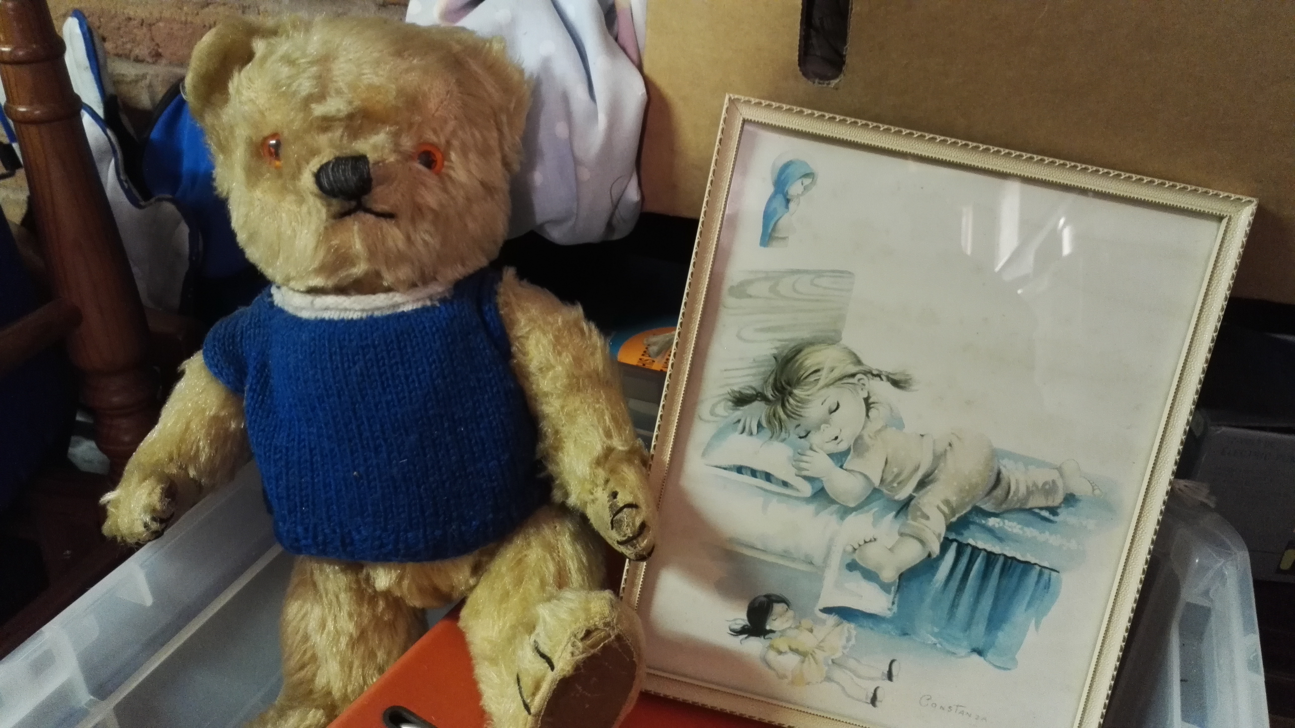Sorting through our belongings I unearthed many memories. From the decade of my life I call the Carefree years (age 1-10) I found my first teddy and a framed picture that hung on the wall above my bed.
