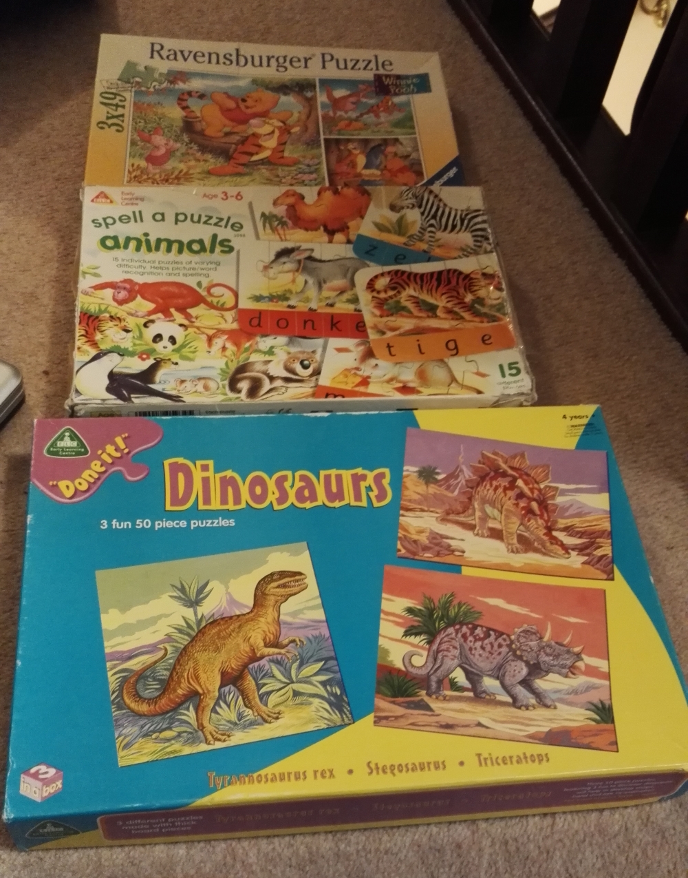 From the Child Rearing years (31- 40) there is so much and it’s hard to let go of anything – everything has a memory whether it be of our children or family. Sorting through the thoughtful gifts my mother bought reminded me of how much time she dedicated, sitting for hours playing games, doing puzzles and reading with them. It reminds me of how much I miss her and how much our children and her other grandchildren have lost out on since the dementia took what makes her, her. It is a cruel disease. We still have her to hold and hug but we do miss how she would have been without it.